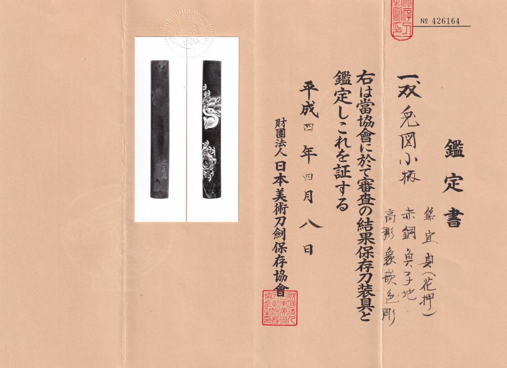材質 : 赤銅魚子地 高彫 象嵌色彫